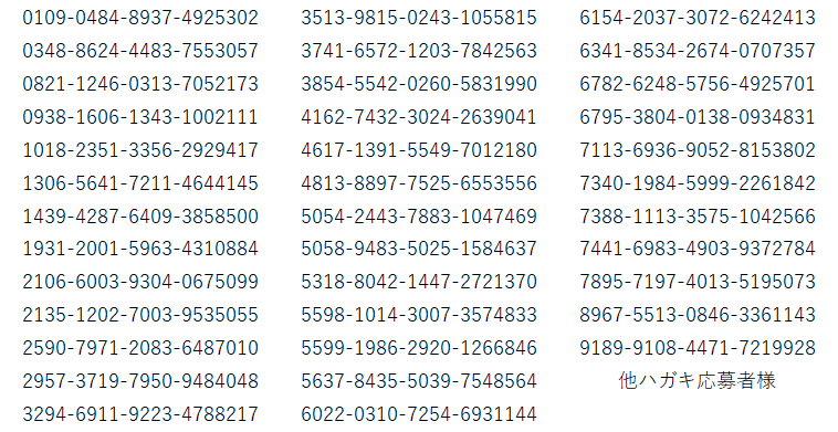 皆さまからのお申し込み状況や抽選の結果から、以下の方をご当選者様として選定させていただきました。