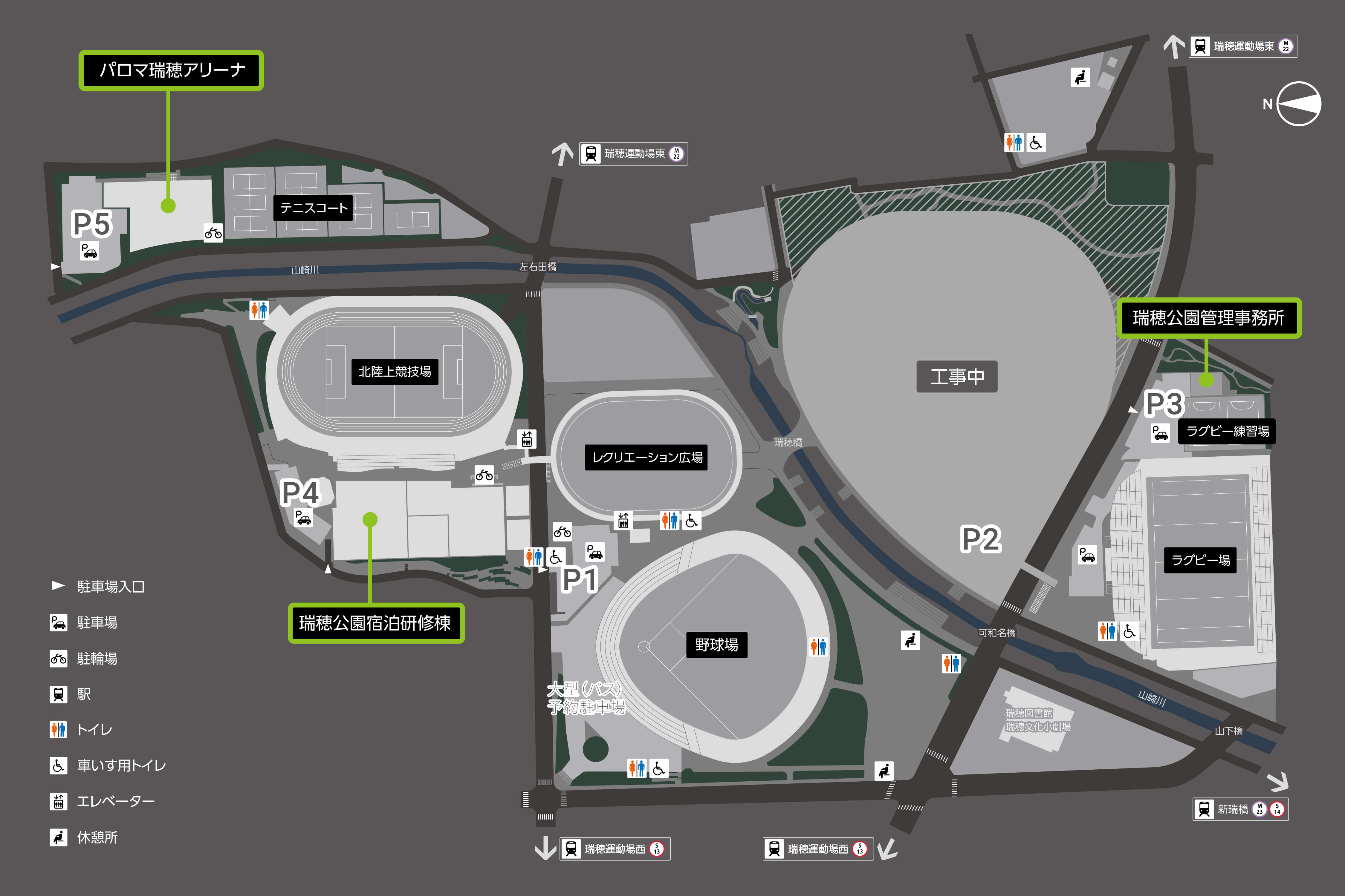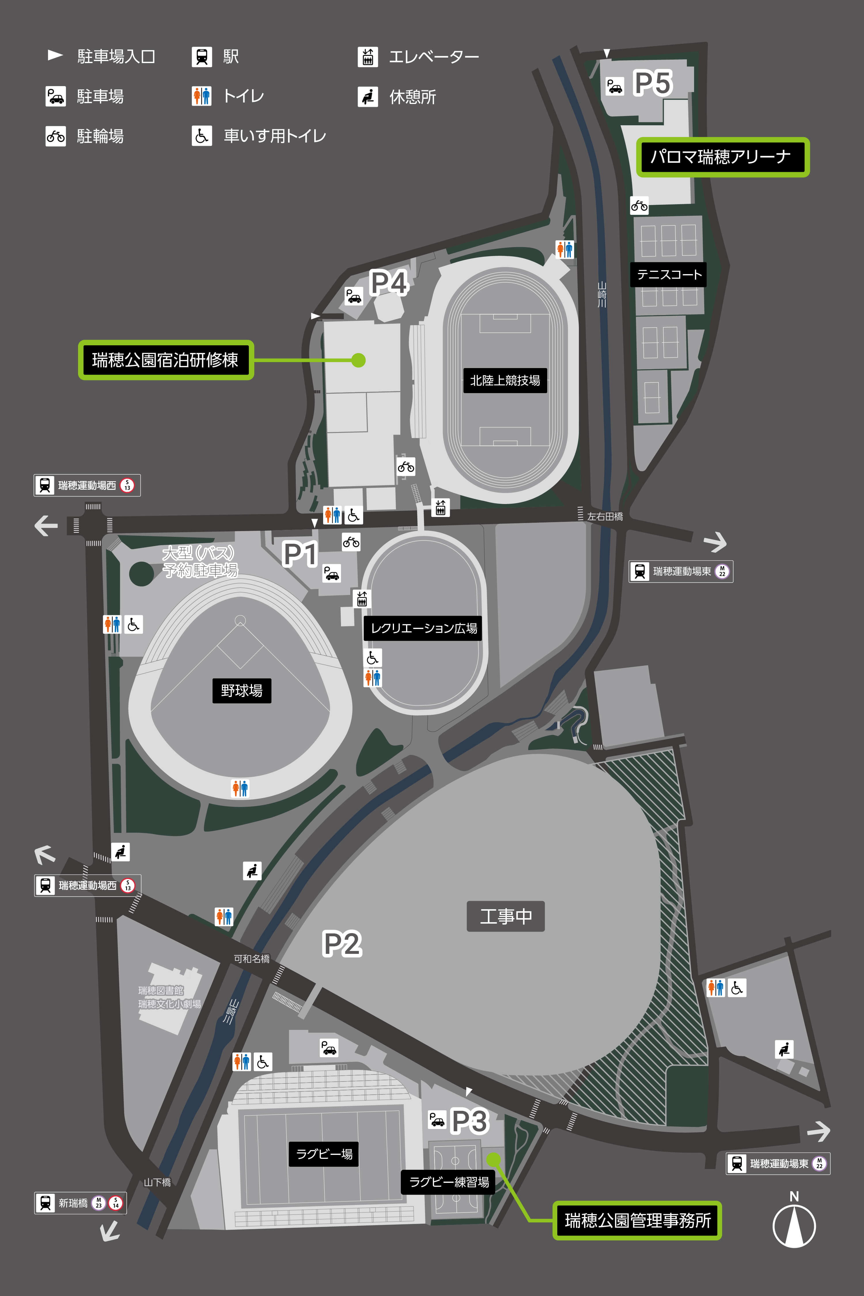 | 北陸上競技場 ラグビー場 ラグビー練習場 野球場(平日の午前・午後)北陸上競技場、ラグビー場、ラグビー練習場、野球場(平日の午前・午後) |